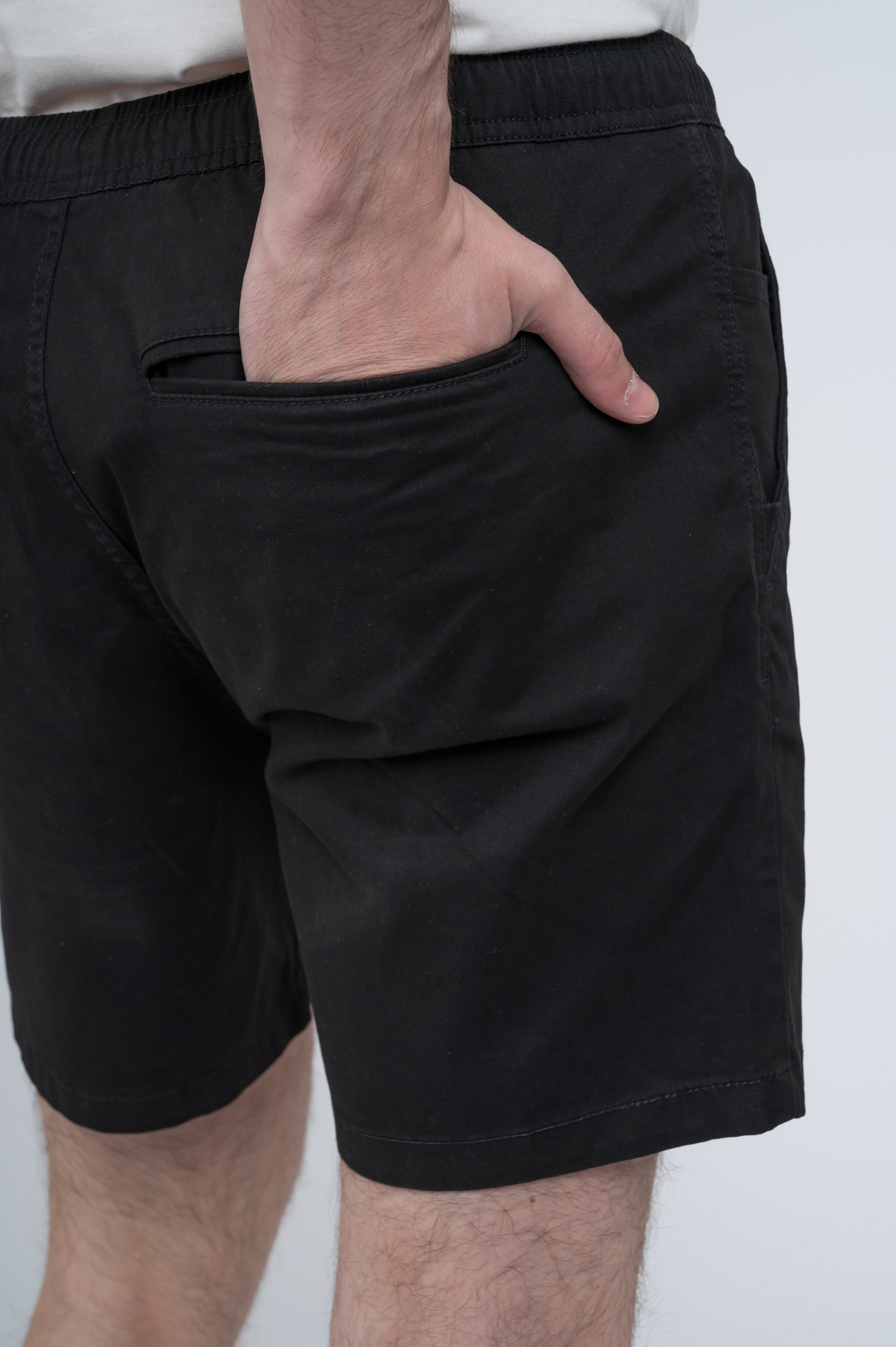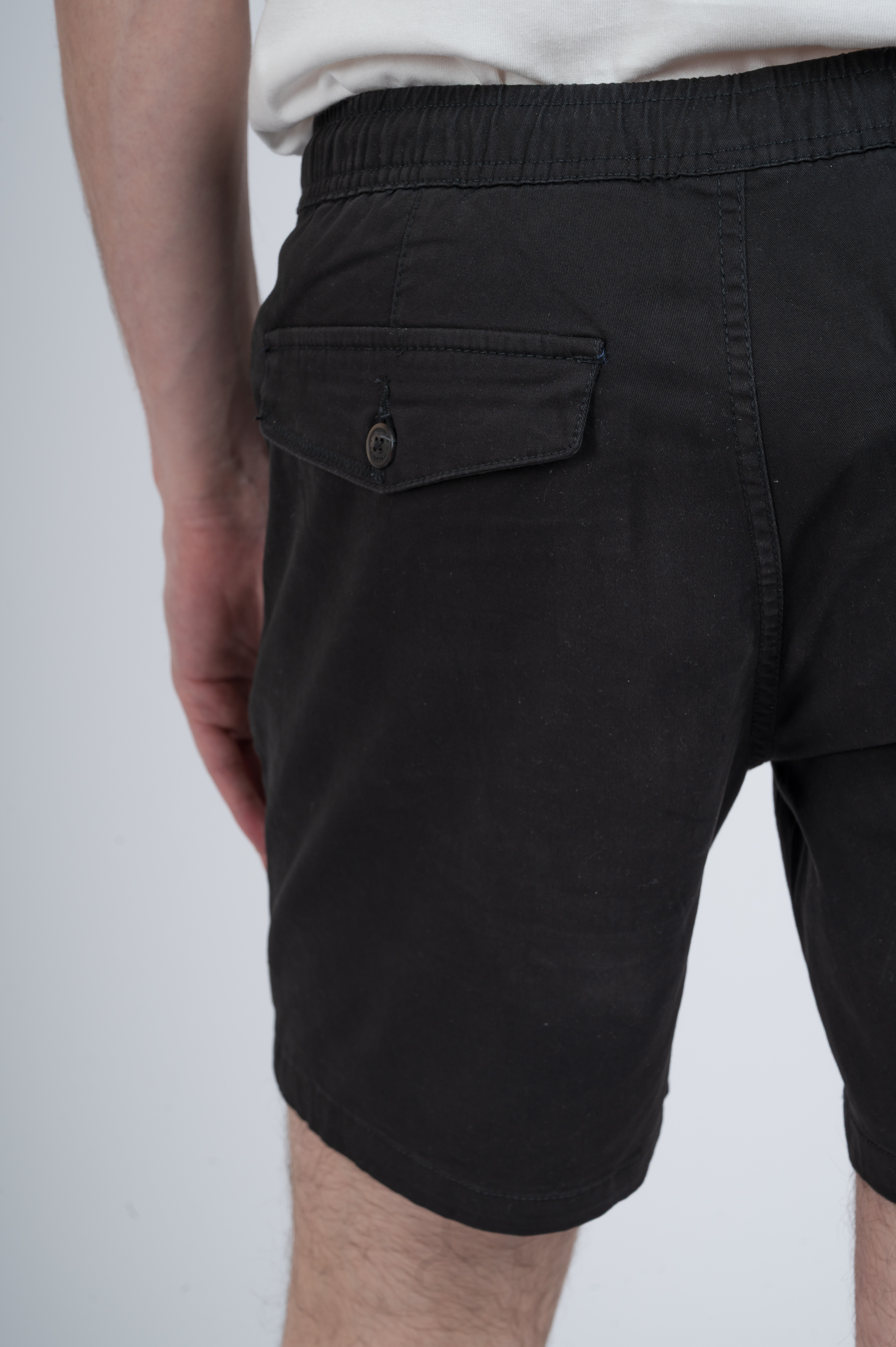 Bermuda tipo corte chino. Posee cintura elástica con cordón ajustable. Composición 98% algodón gabardina, 2% elastano.