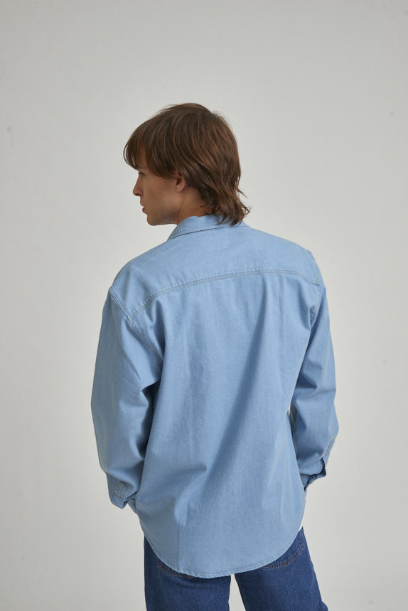 Camisa de denim regular. Acceso mediante broche. Corte regular. Bolsillo plaqué en el frente. Composición 100% algodón.