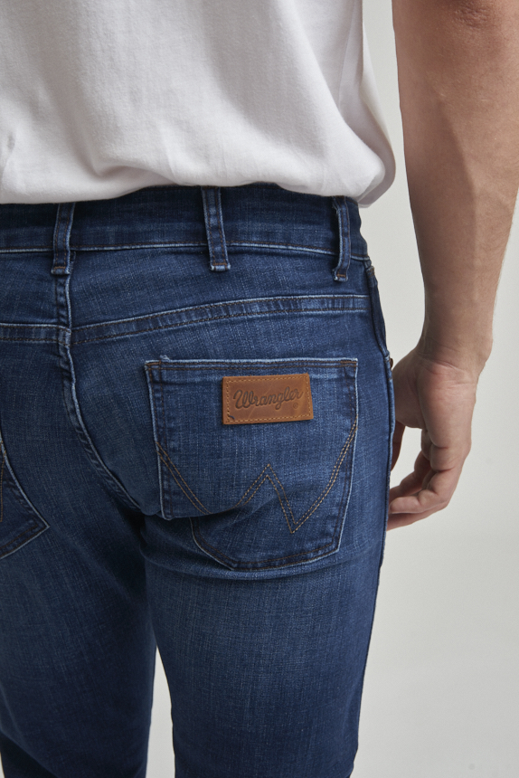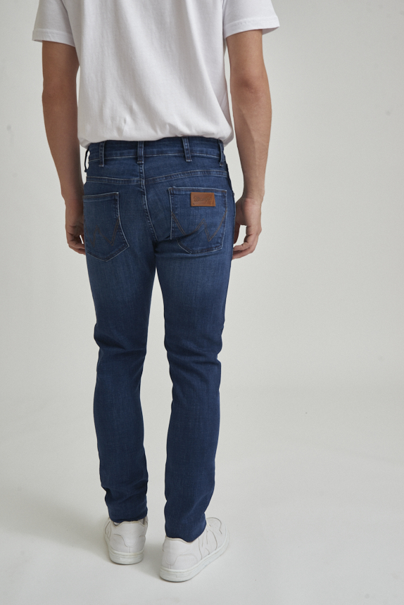 Jean de tiro medio, ajustado en caderas, muslos y piernas, bota recta. Silueta moderna y entallada. El modelo mide 1.85 y usa talle 30.