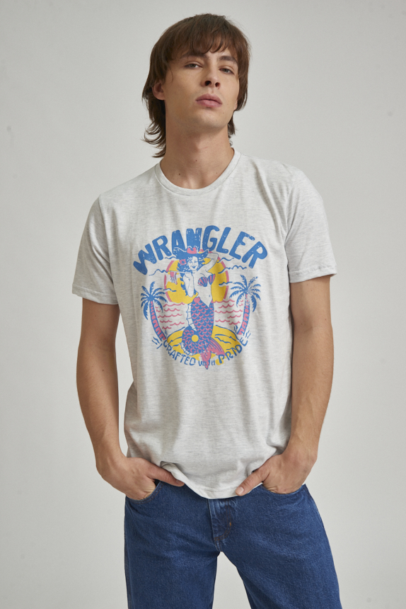 Remera de manga corta estampada, calidad y confort con un diseño moderno. El modelo mide 1.85 y usa talle M.