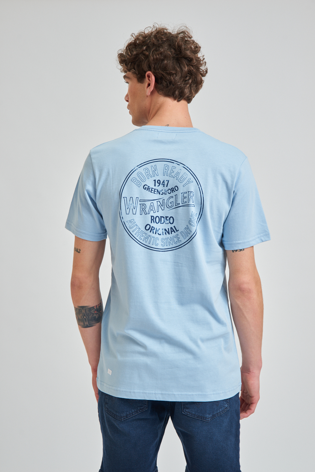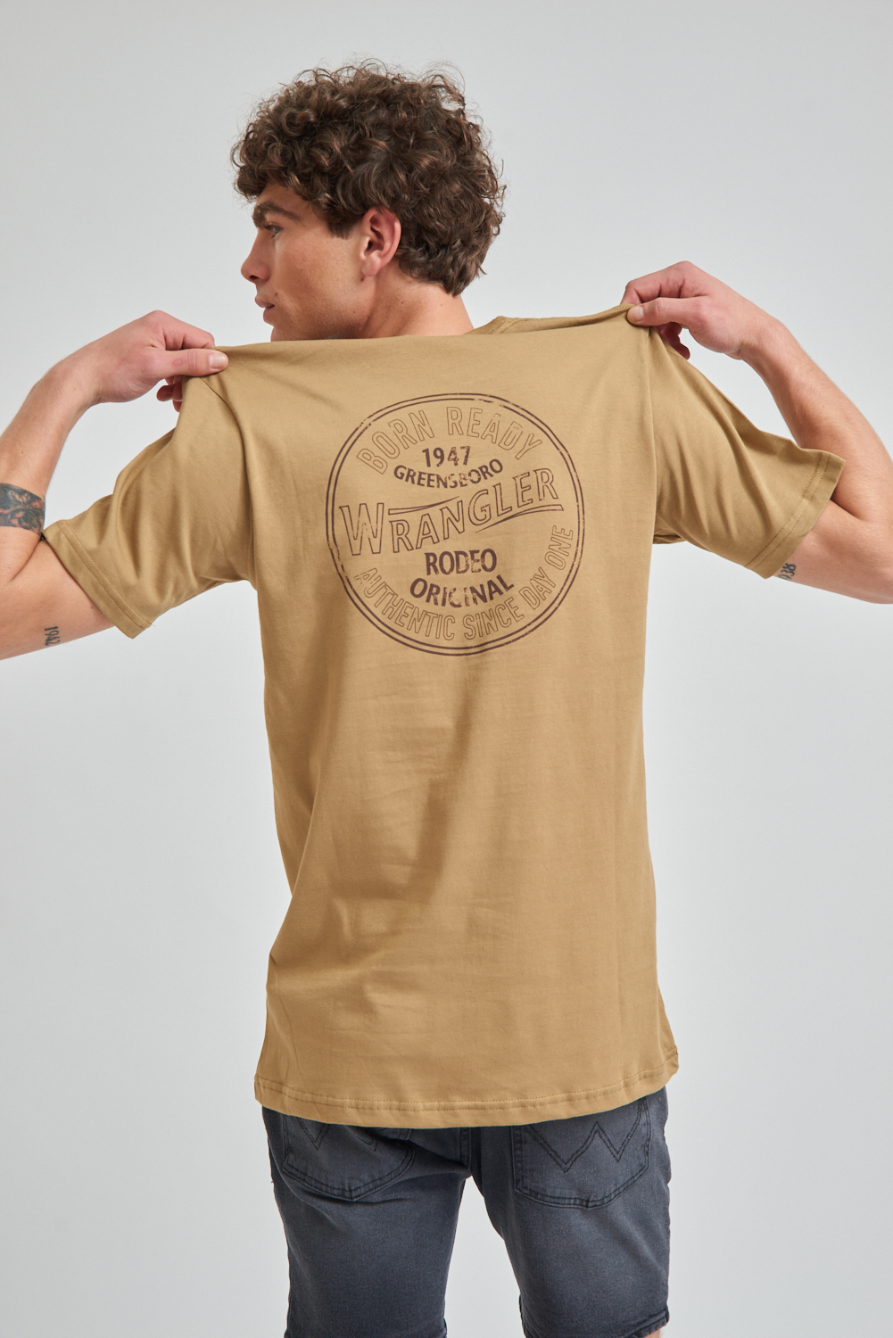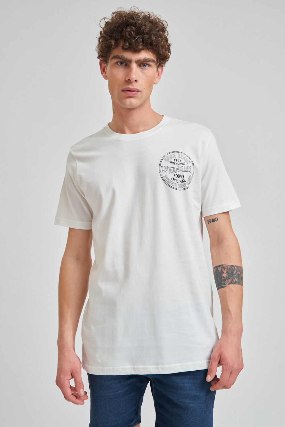 Remera de manga corta estampada, calidad y confort con un diseño moderno. El modelo mide 1.85 y usa talle M.