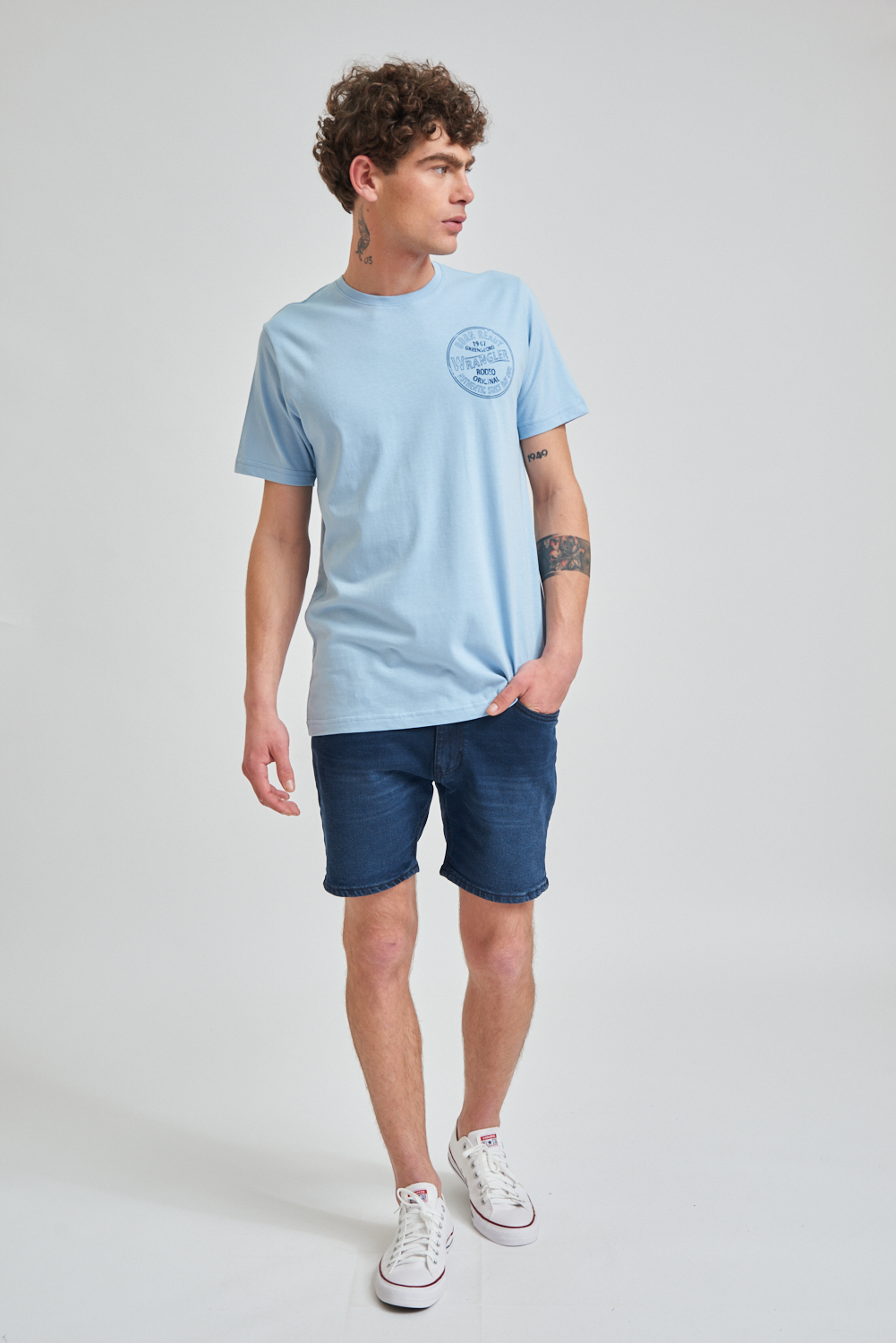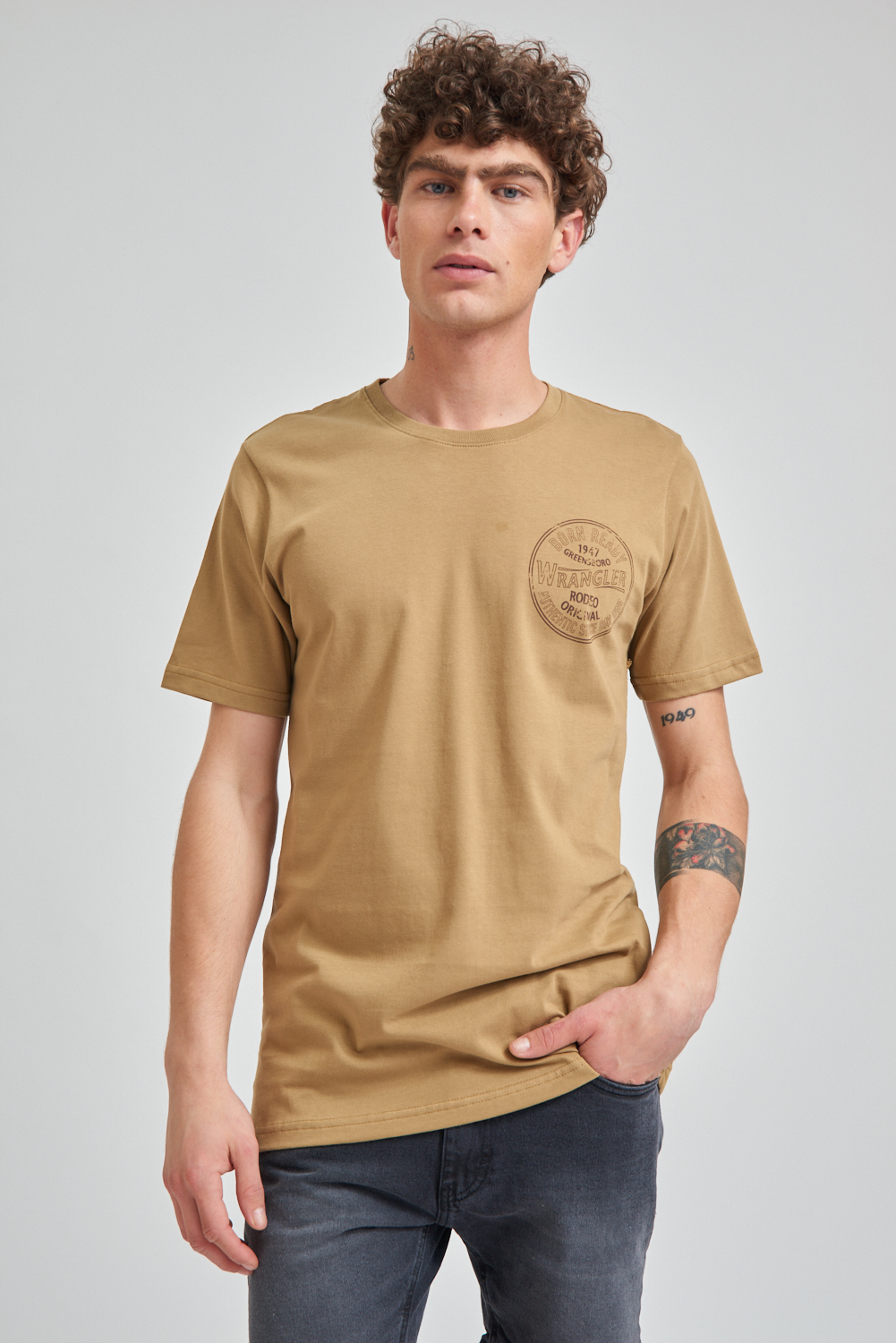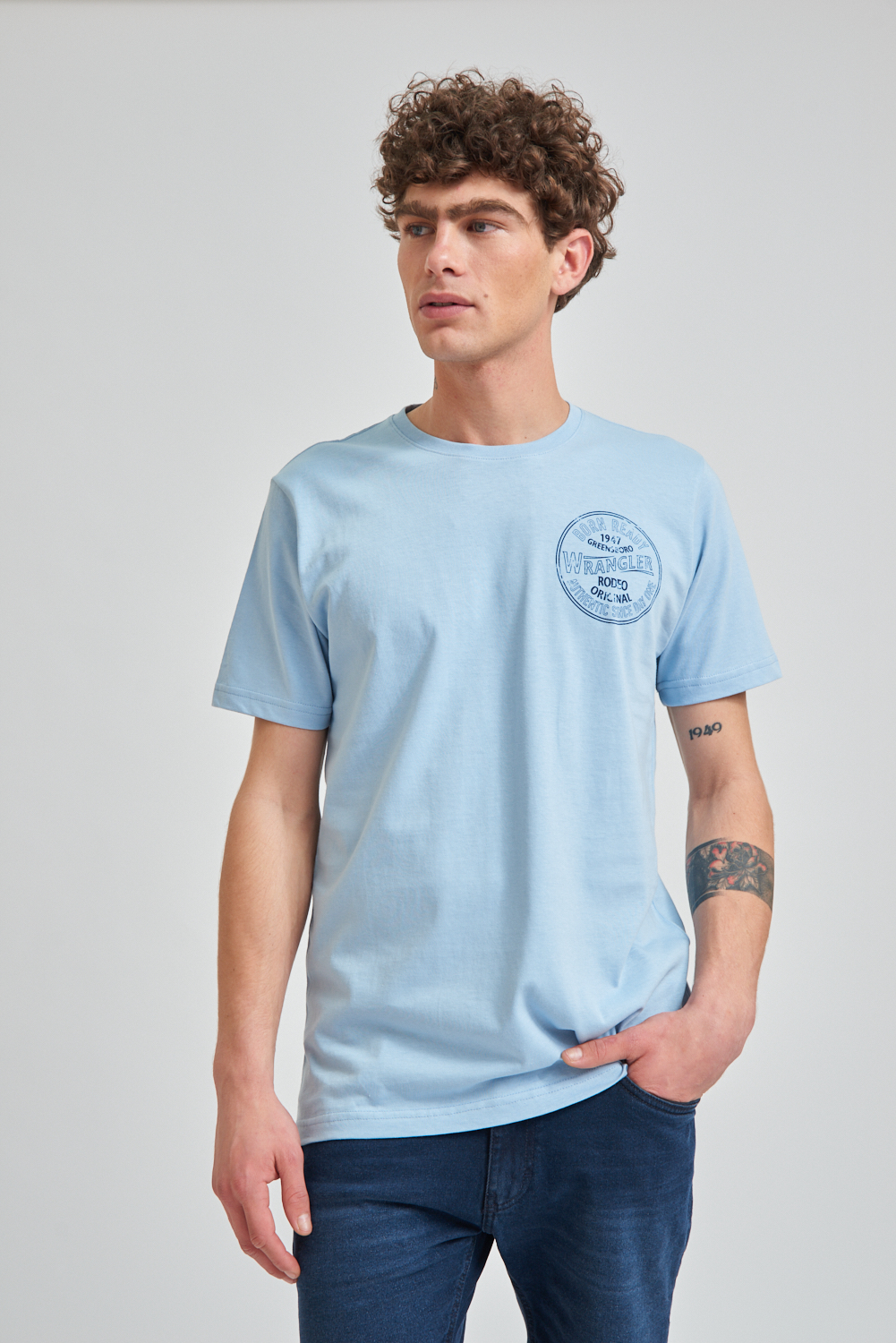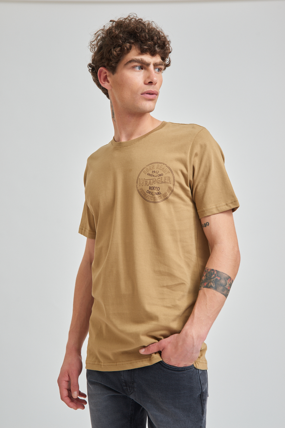 Remera de manga corta estampada, calidad y confort con un diseño moderno. El modelo mide 1.85 y usa talle M.