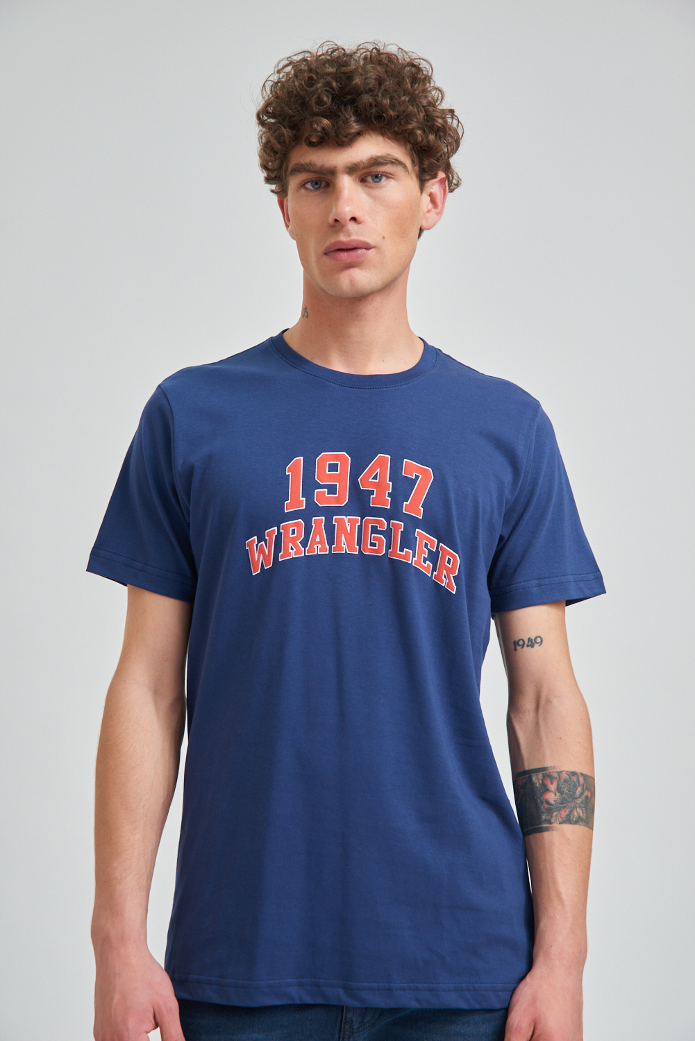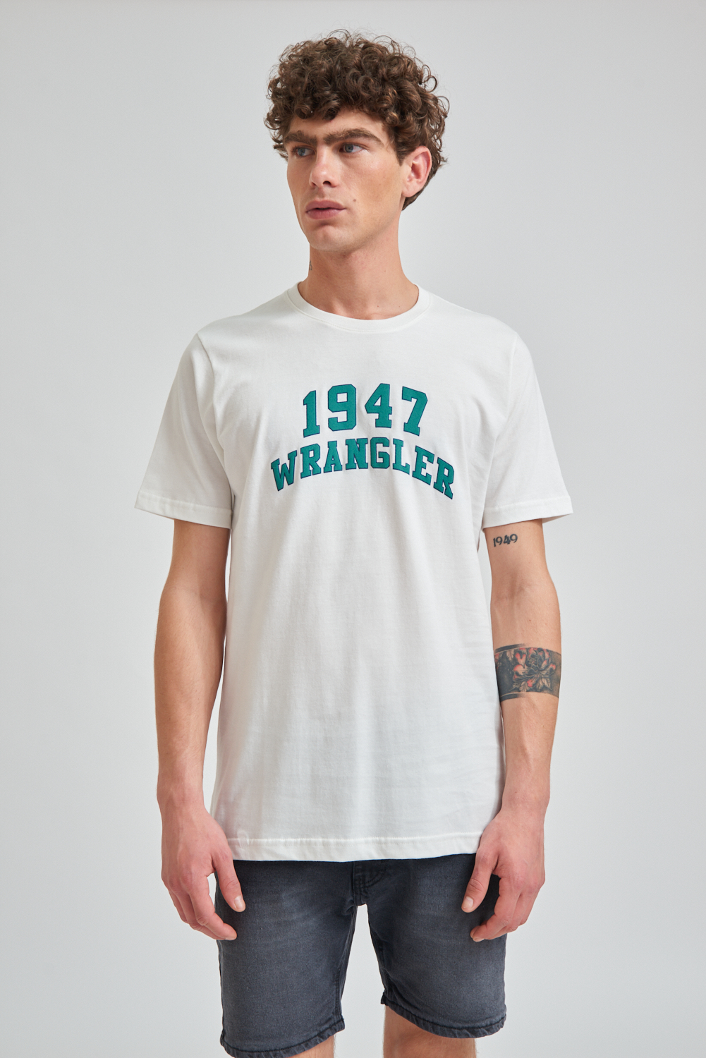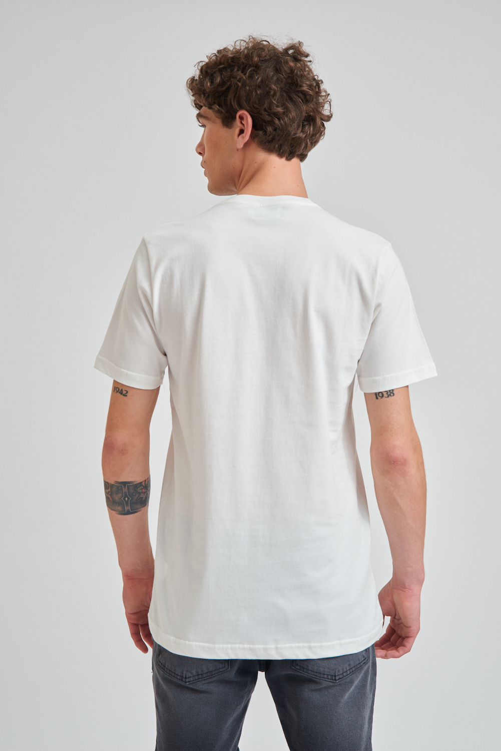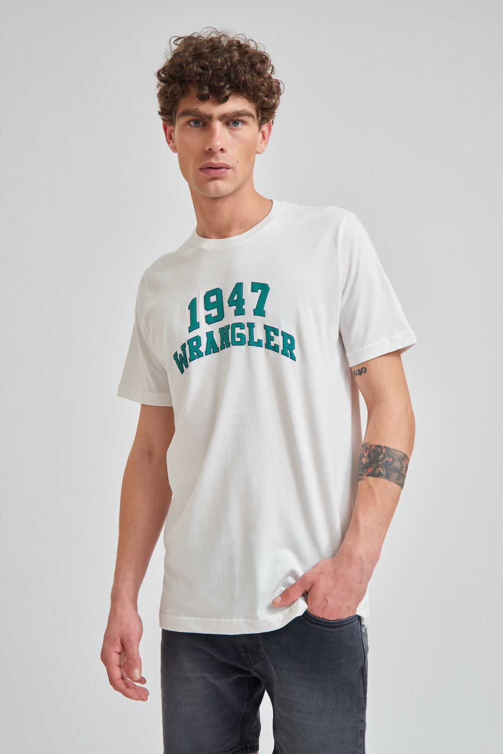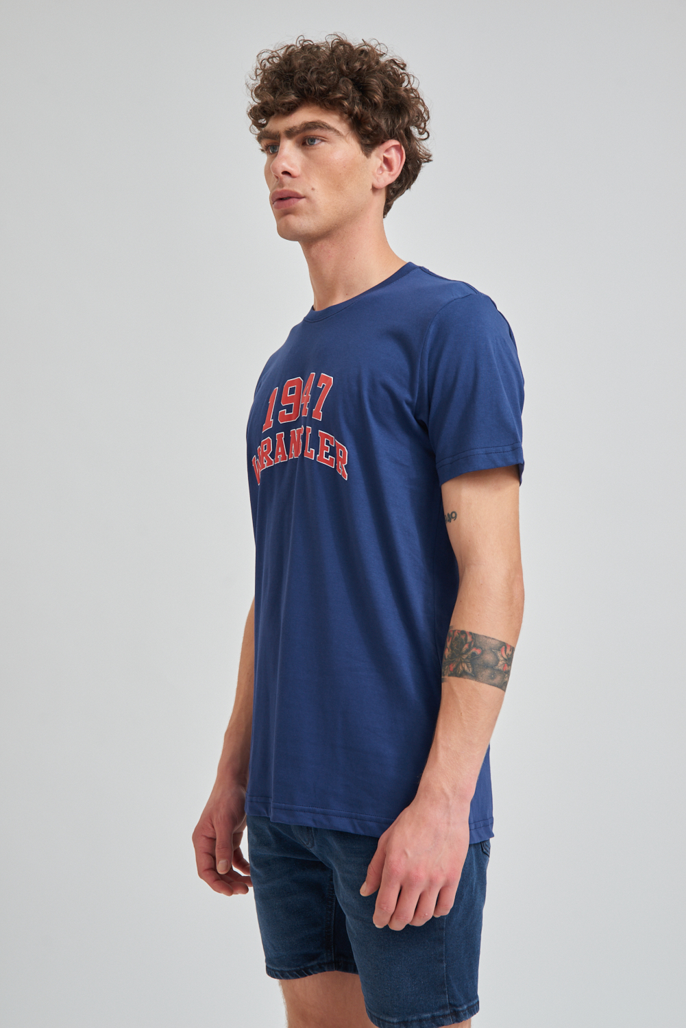 Remera de manga corta estampada, calidad y confort con un diseño moderno. El modelo mide 1.85 y usa talle M.