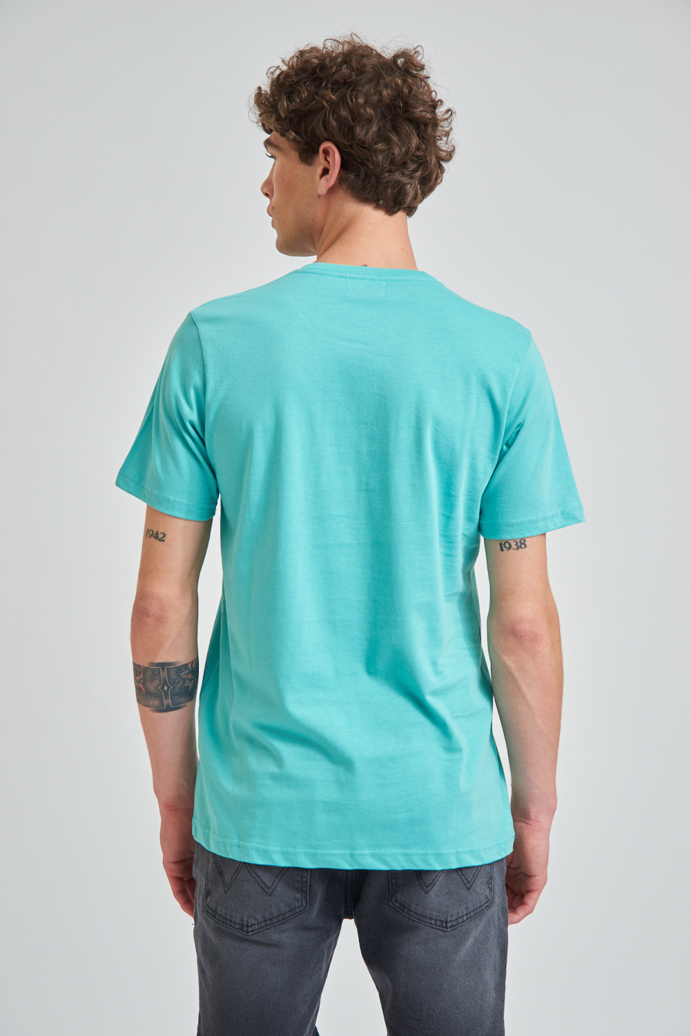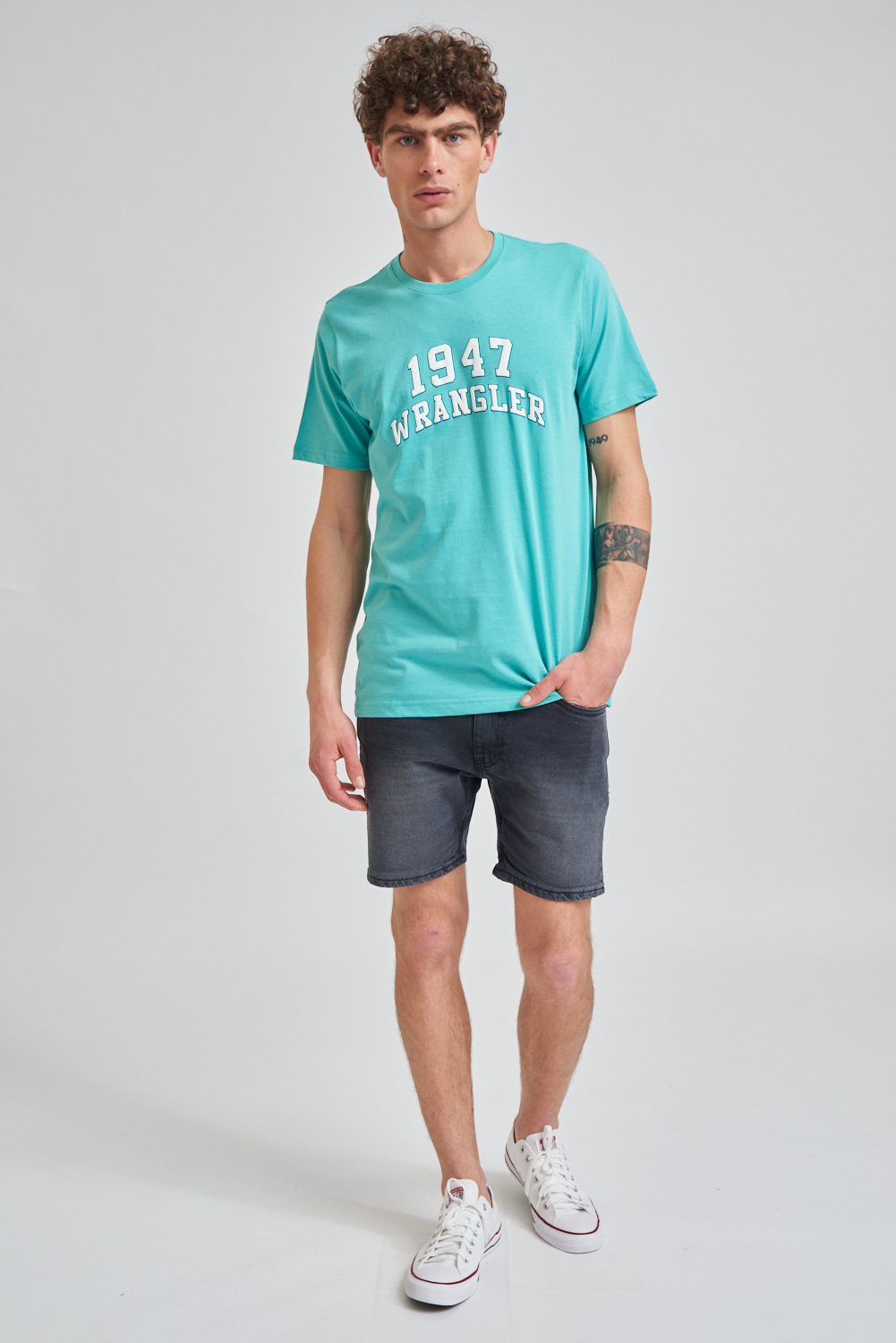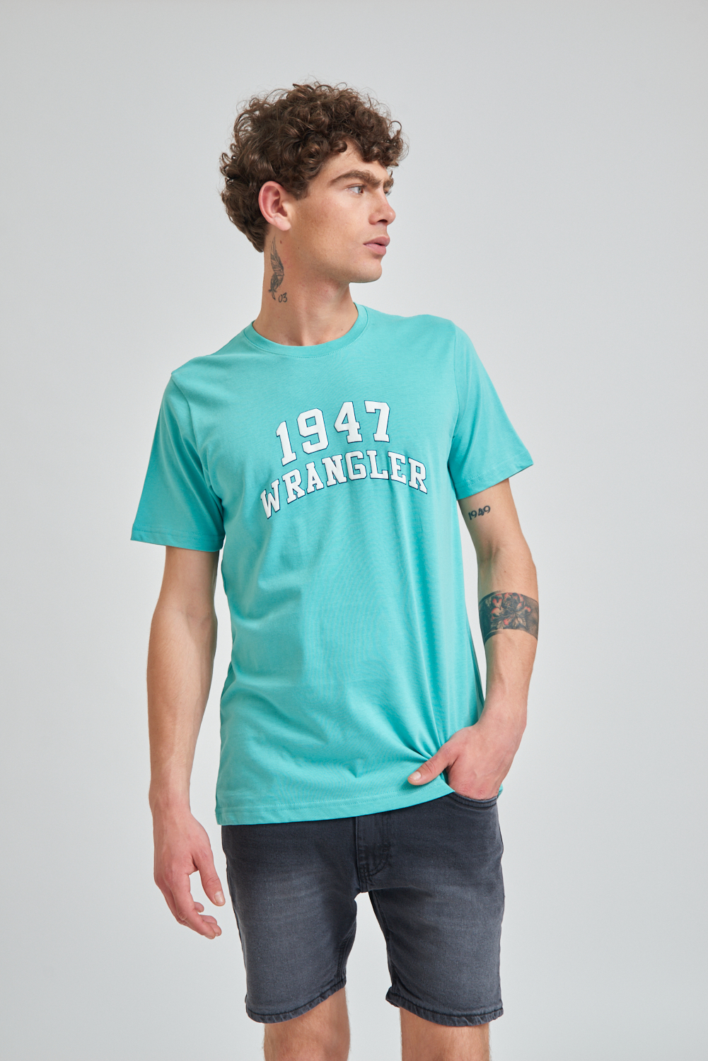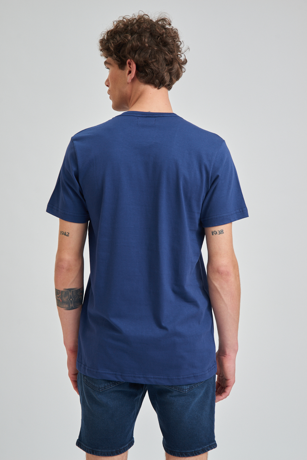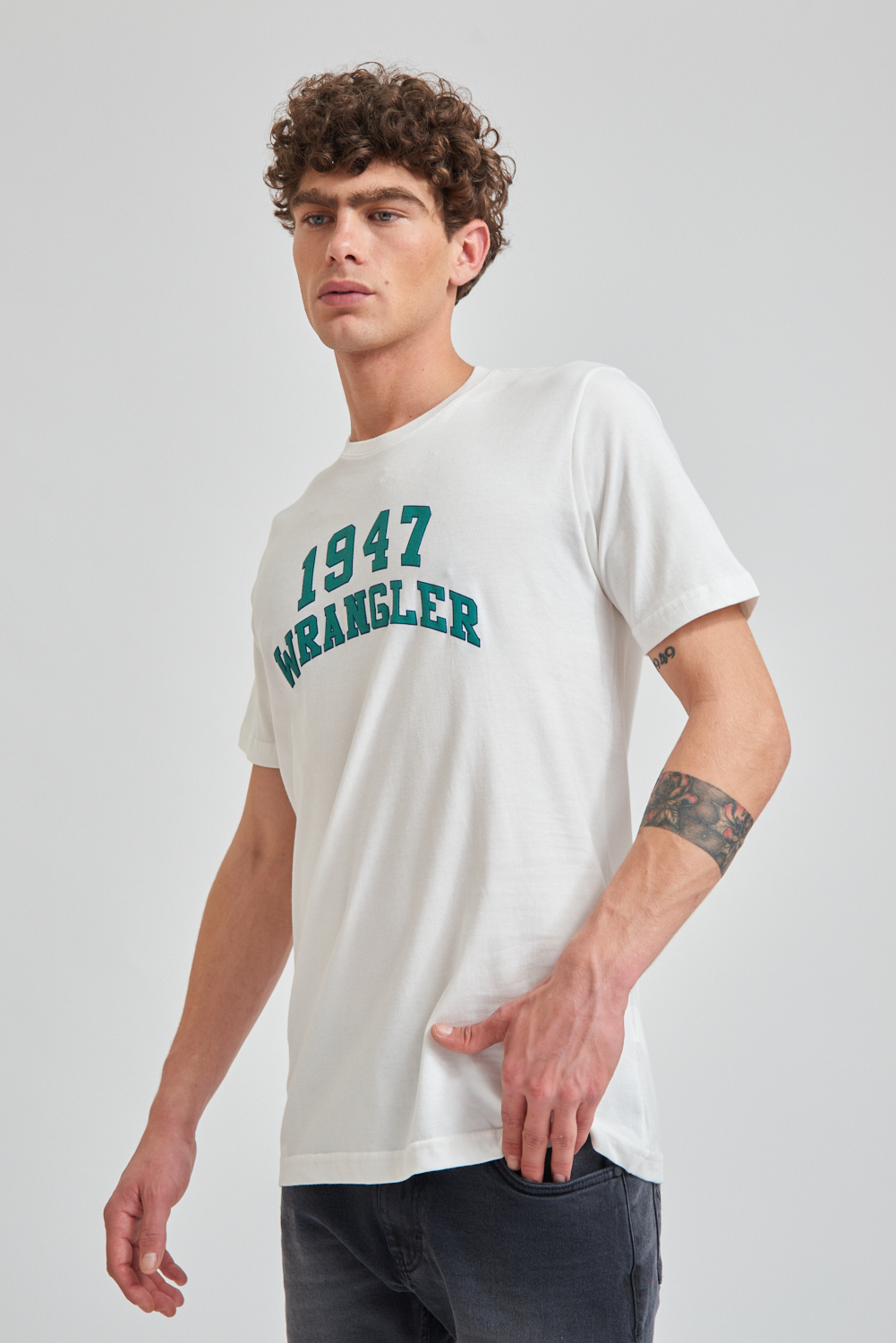 Remera de manga corta estampada, calidad y confort con un diseño moderno. El modelo mide 1.85 y usa talle M.