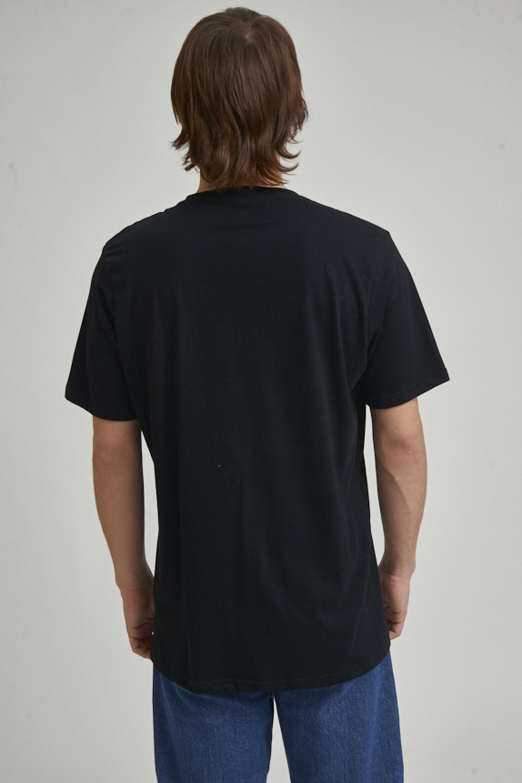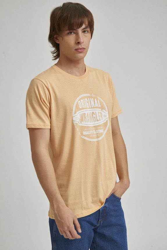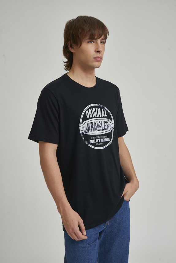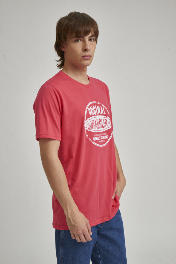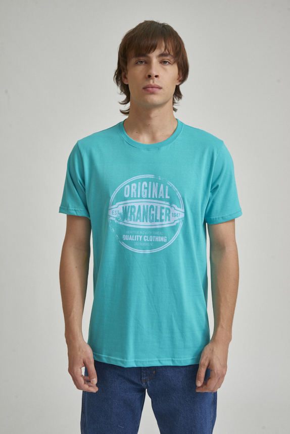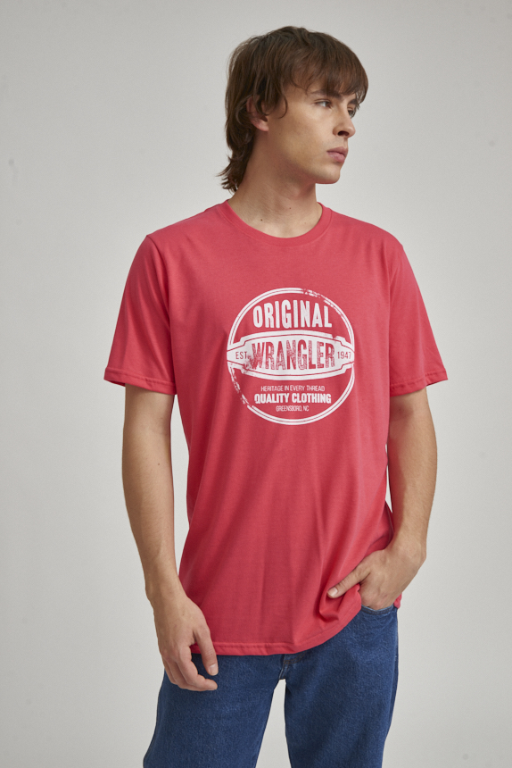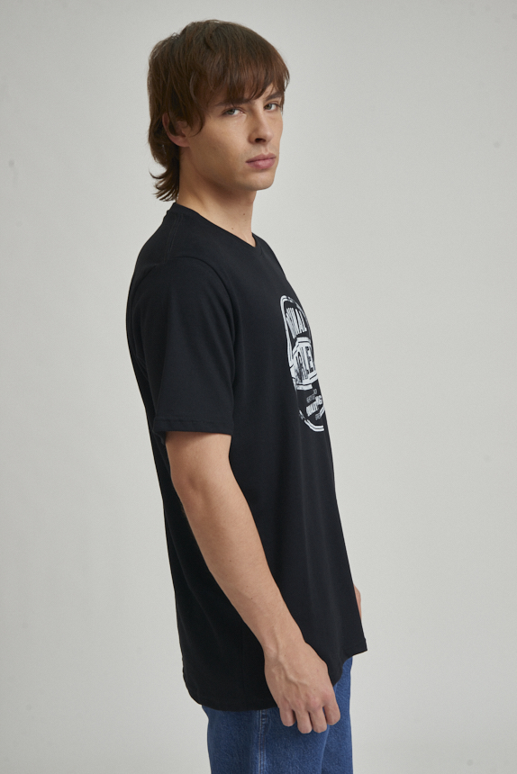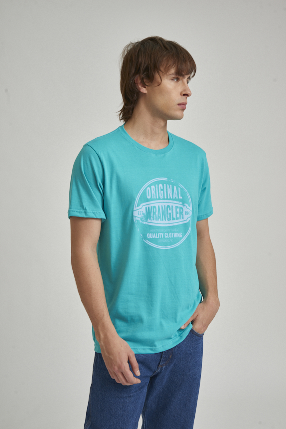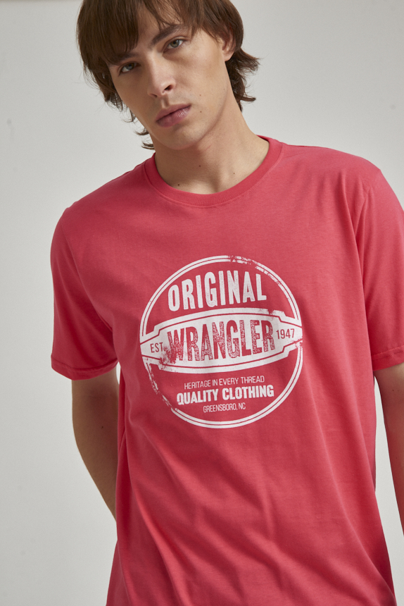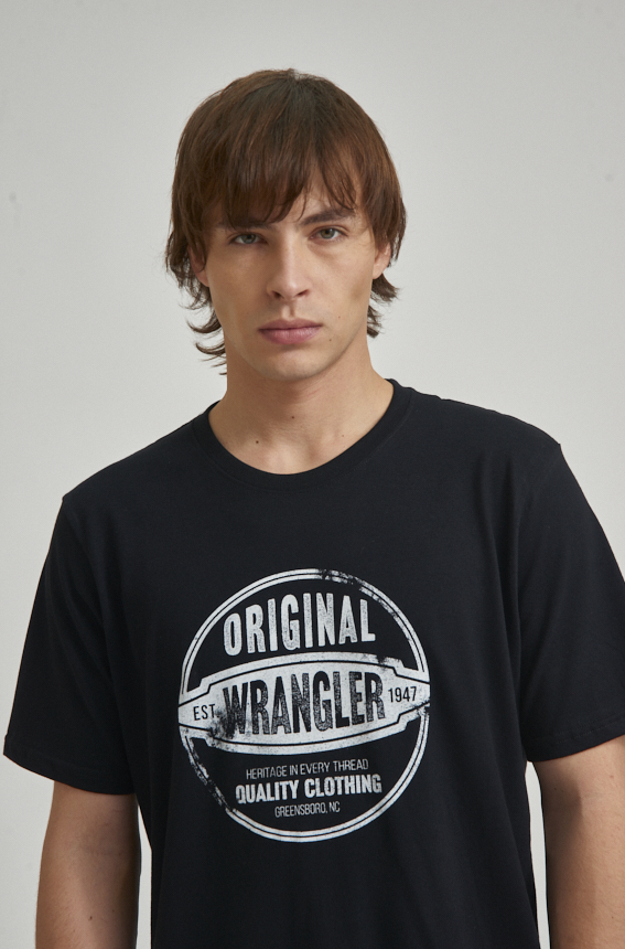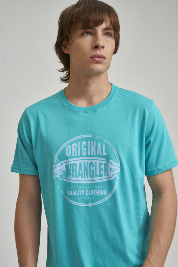 Remera de manga corta estampada, calidad y confort con un diseño moderno. El modelo mide 1.85 y usa talle M.