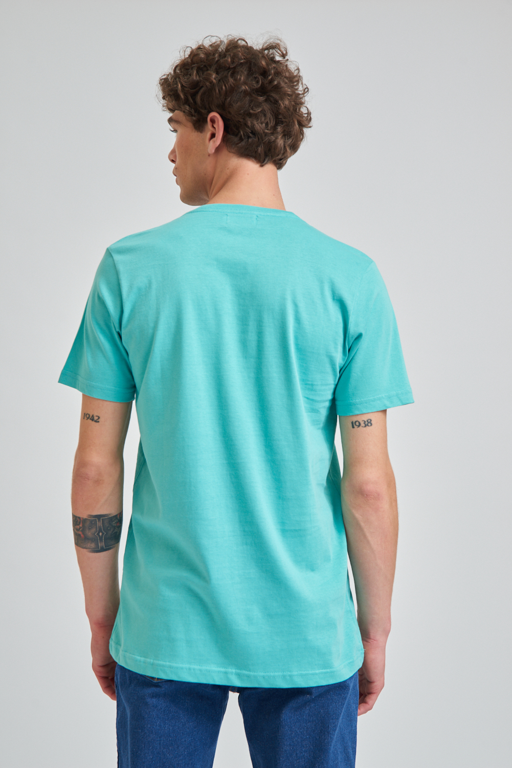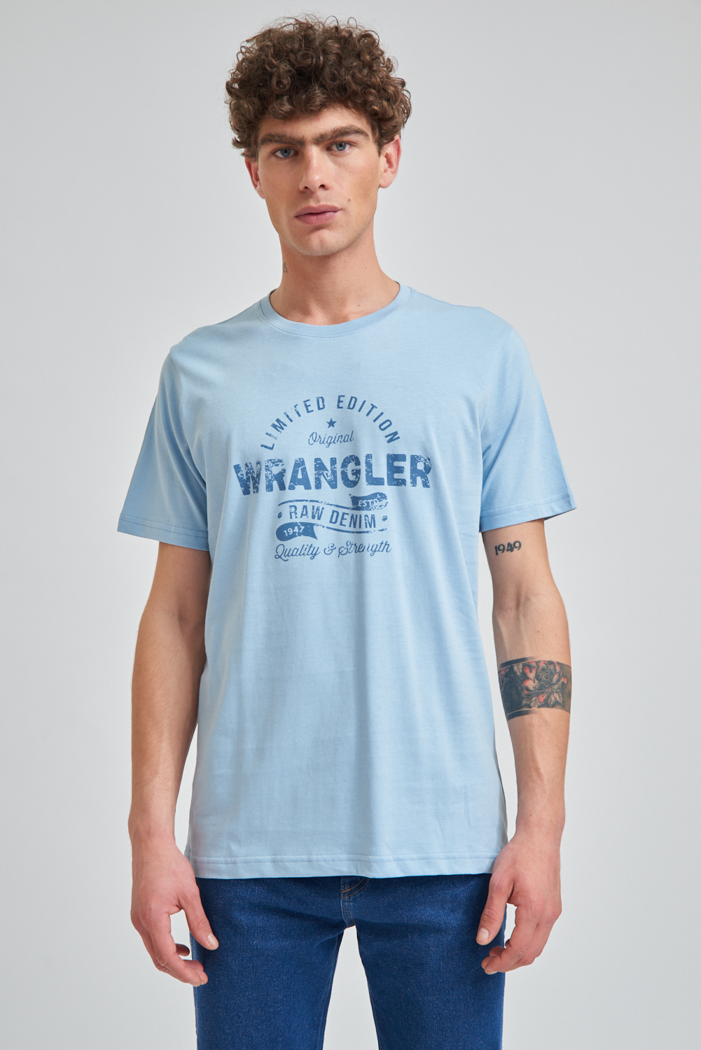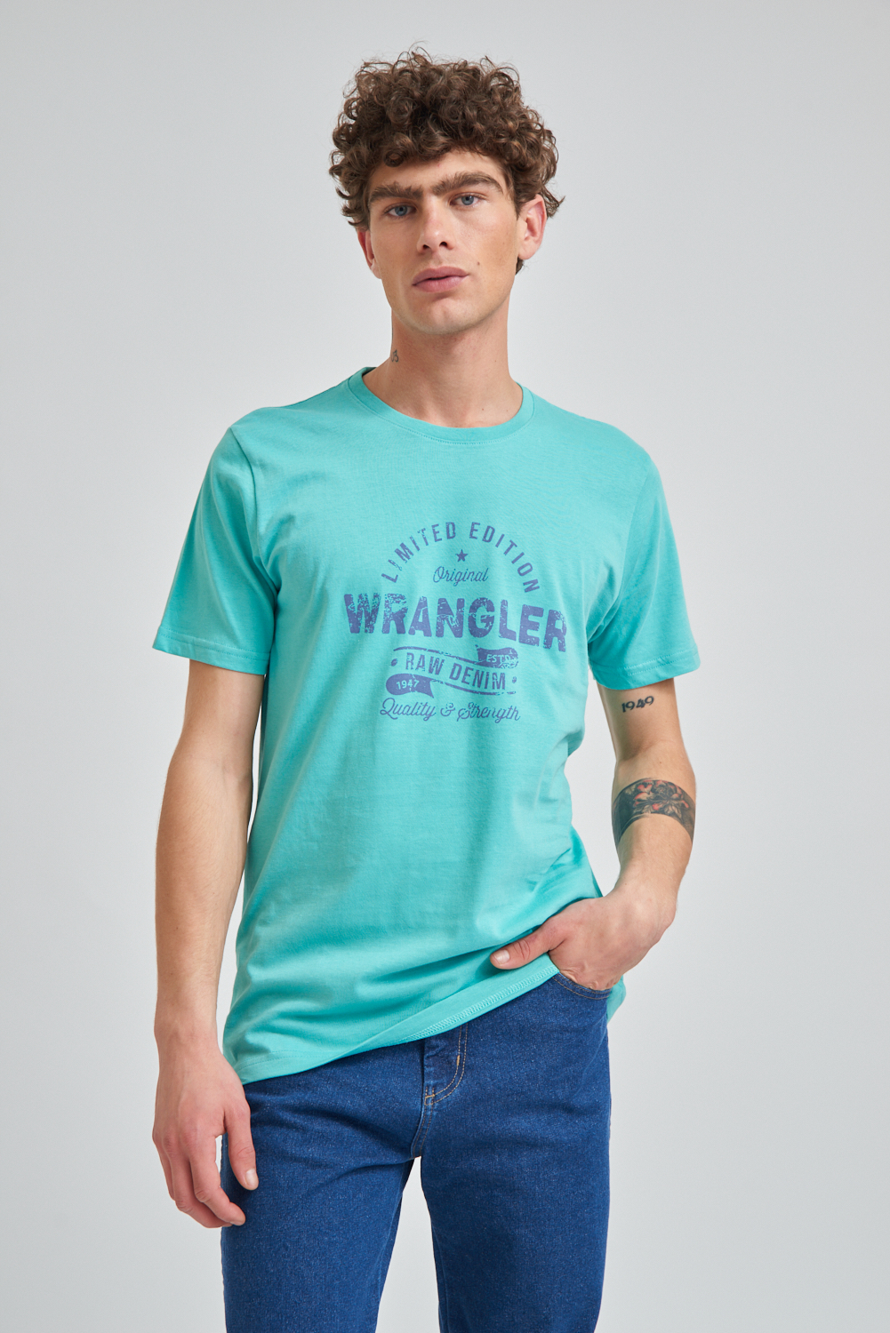 Remera de manga corta estampada, calidad y confort con un diseño moderno. El modelo mide 1.85 y usa talle M.
