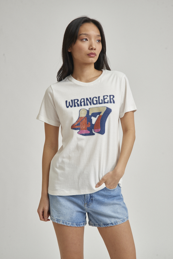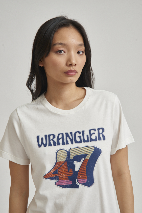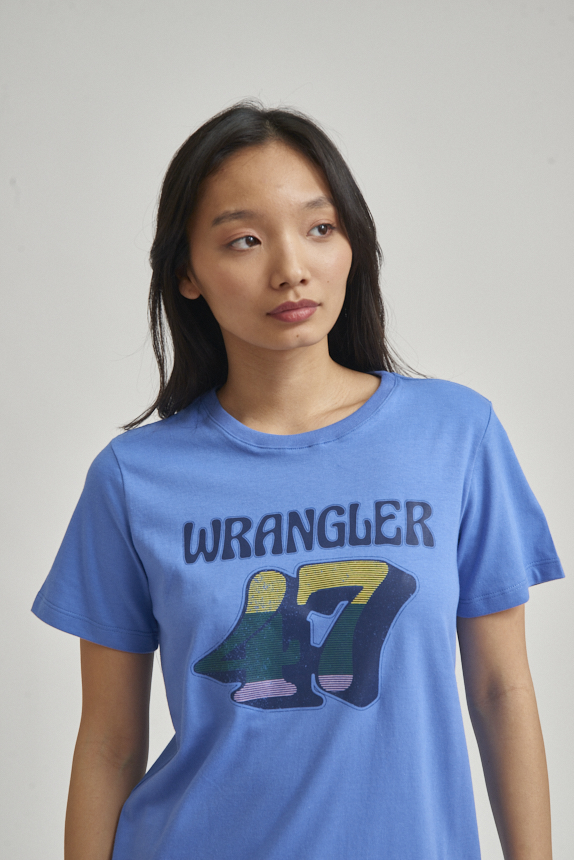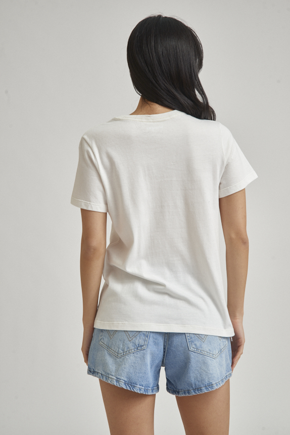 Remera de manga corta estampada, calidad y confort con un diseño moderno. La modelo mide 1.70 y usa talle S.