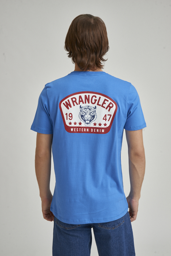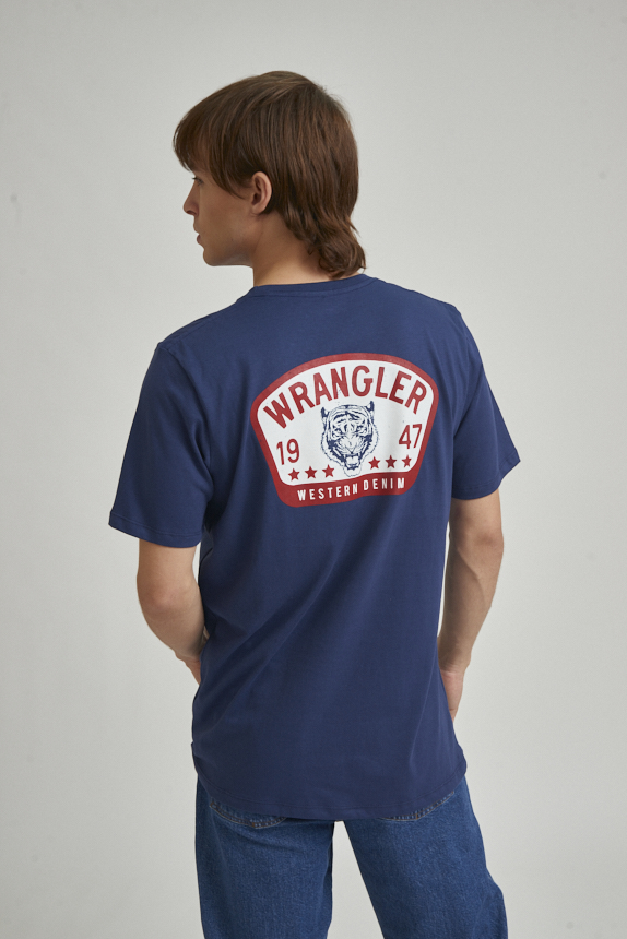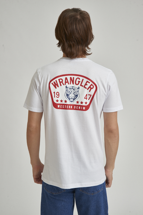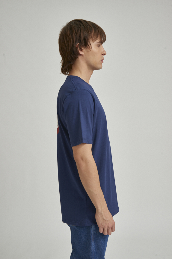 Remera de manga corta estampada, calidad y confort con un diseño moderno. El modelo mide 1.85 y usa talle M.